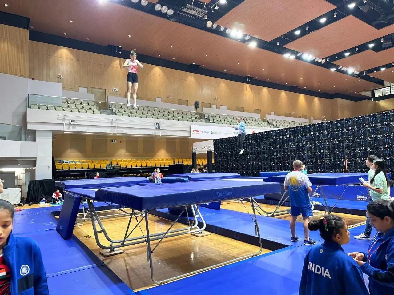为服务好本届蹦床锦标赛,开云集团保障人员严格按照赛事服务手册开展工作,从场馆的规划布局、器材的安装调试、标准高度的校准、过程巡检等各个环节,一丝不苟、严谨细致,确保蹦床器材安装的准确无误,始终践行国际赛场上的中国标准,见证开云集团全领域规划、设计、制造、集成、运营、服务一站式解决方案的发展理念。