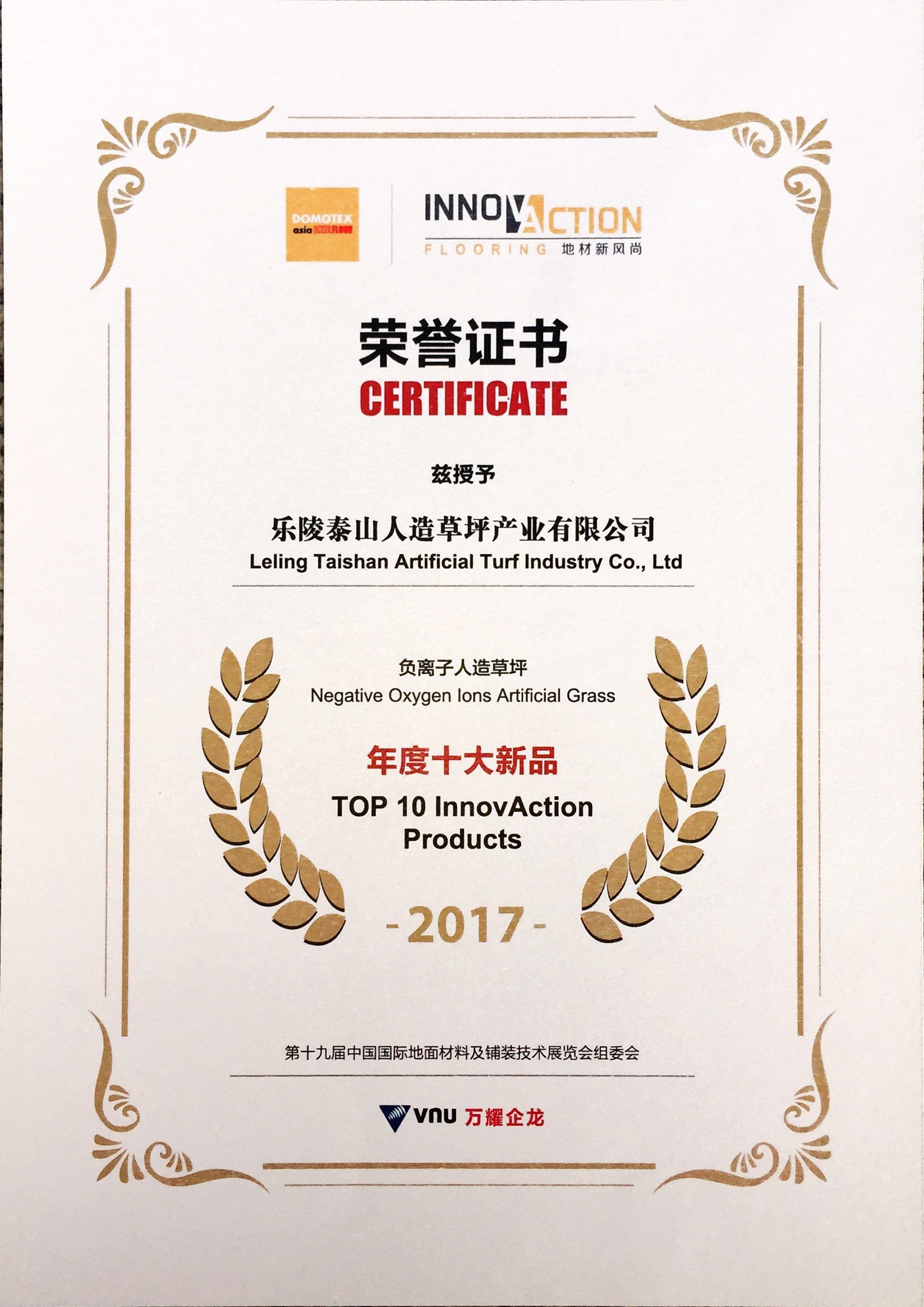 乐陵开云集团人造草坪产业有限公司负离子人造草坪年度十大新品2017